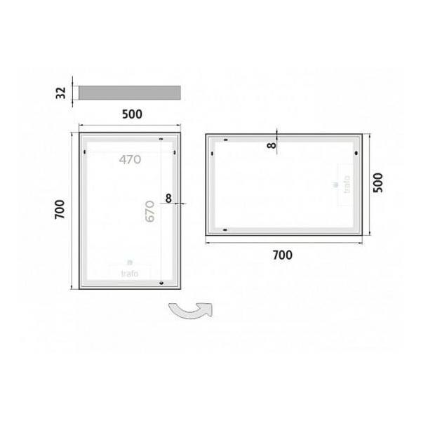 - Výkonné LED diody po celém obvodu zrcadla zakryté 8 mm rámečkem